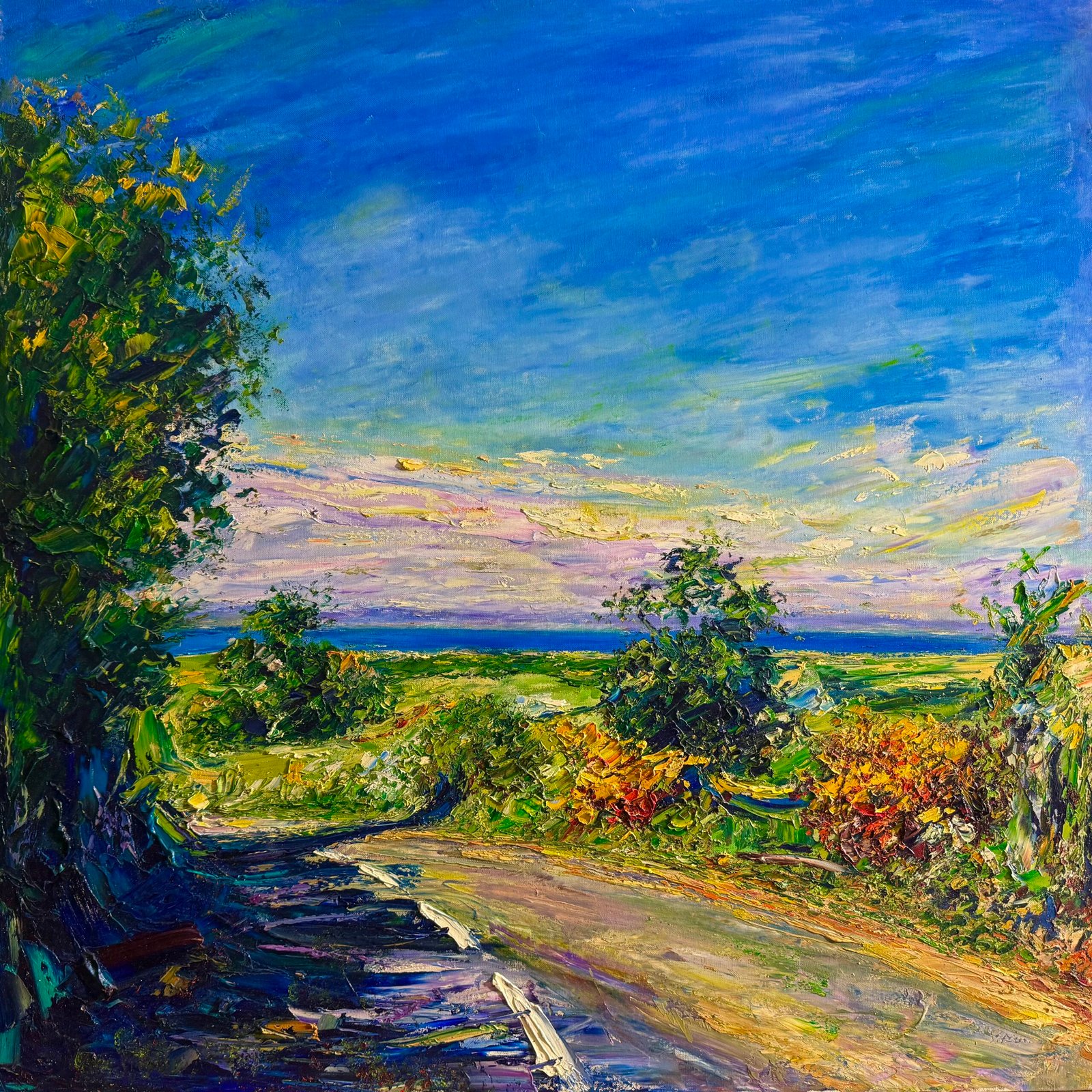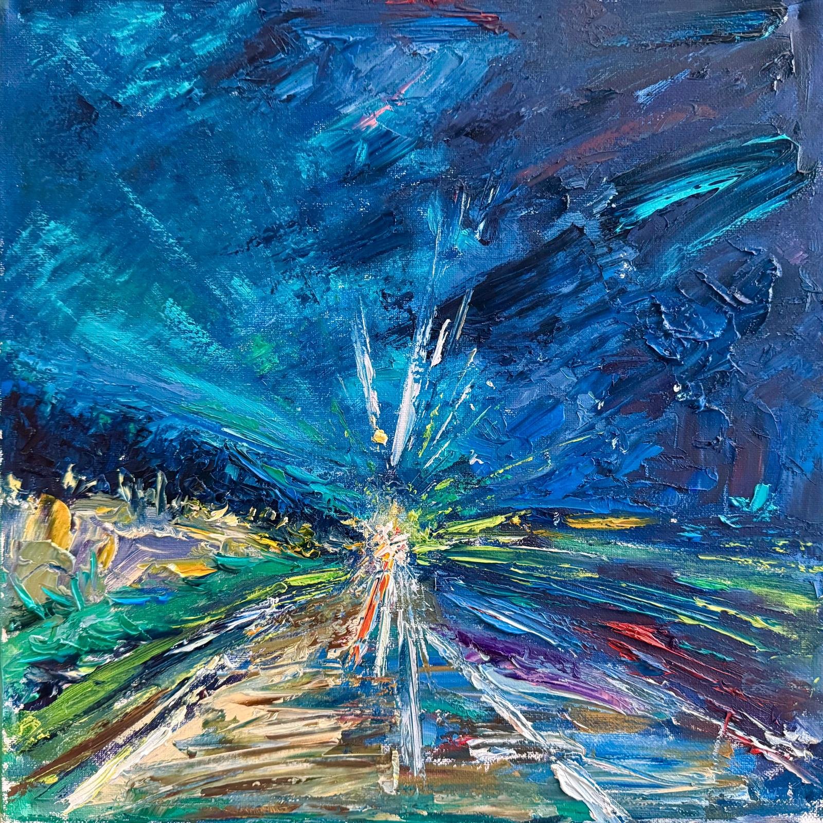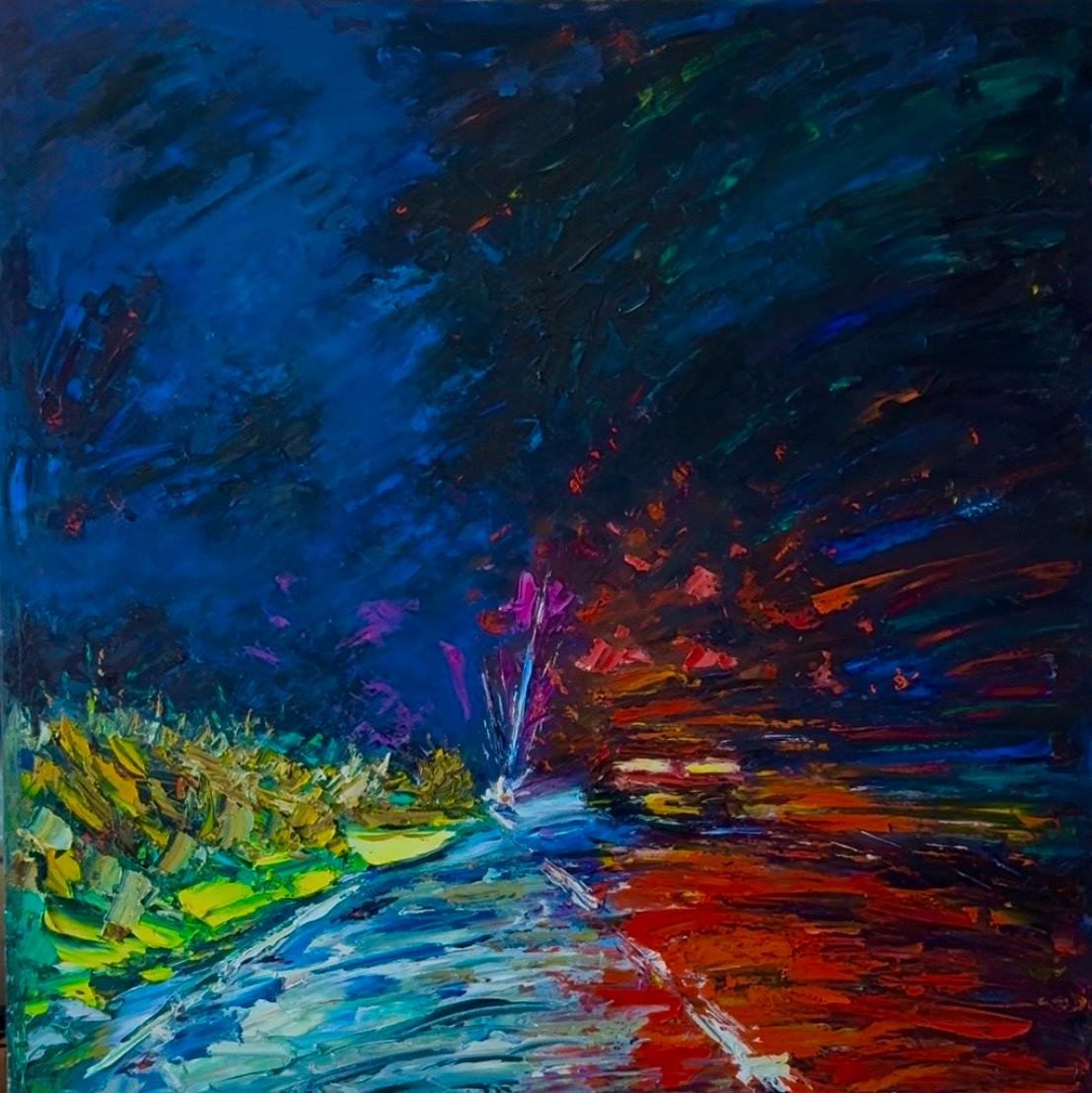The painterly language captures the dynamics of movement, shifting light, tension, and calm that intertwine during the journey. Bold colors, texture, and gesture serve as a record of emotion, sometimes intense, sometimes subdued, but always honest. These are not paintings of specific places, but of states of being… moments that exist between departure and return.